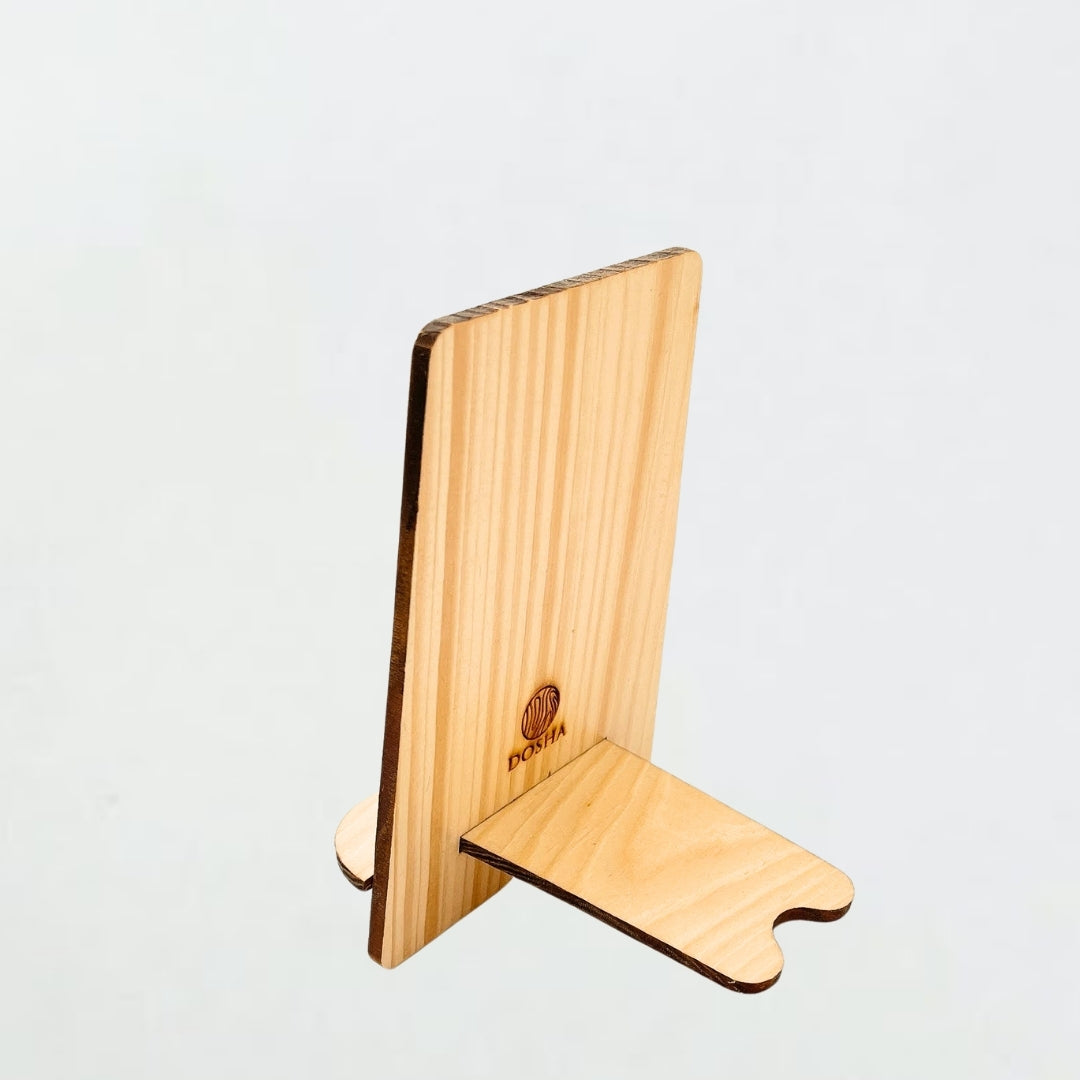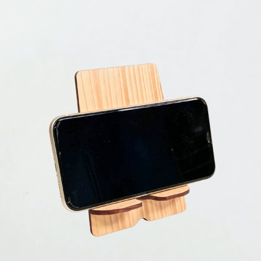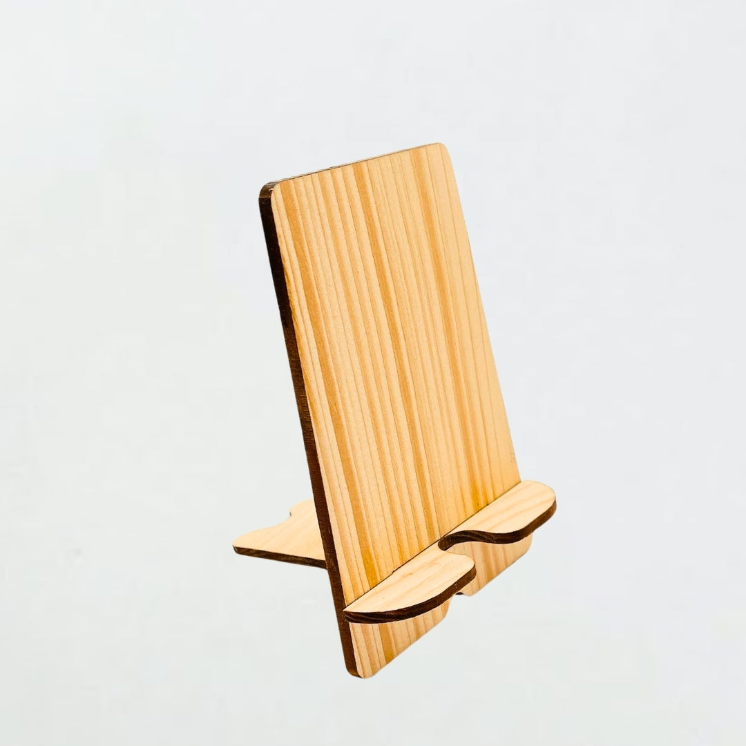 一塊木板有預先開好的插槽,另一塊木板插入即可穩固支撐手機。