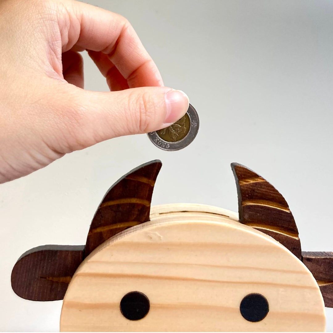 動物木製存錢筒|牛・小雞・兔子・小豬